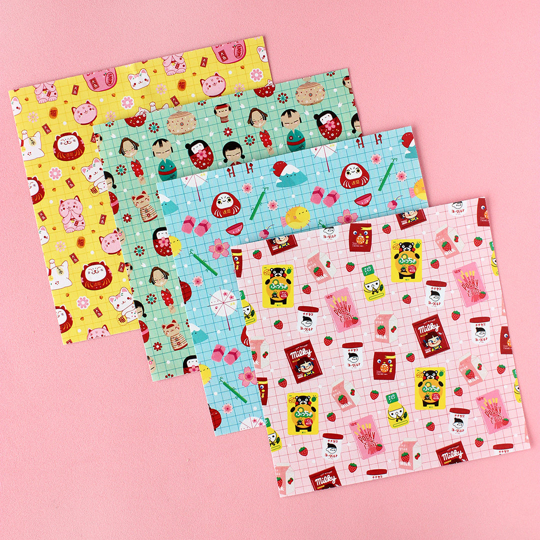 I made origami paper packs with 4 designs
